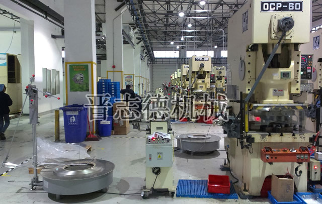 4、雙錐頭式脹縮方式:做成兩個剛性的錐頭主軸,其主軸裝人左、右兩邊的立柱之中,當驅動左、右立柱時,錐頭漲緊卷料內徑,此種開卷方式是專為晉志德雙頭材料架研發設計的,主要用于不間斷沖壓加工場合,如馬達定轉子的高速沖壓生產線。